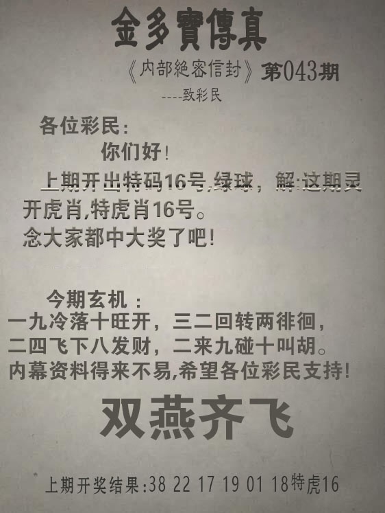 202643期:金多宝传真